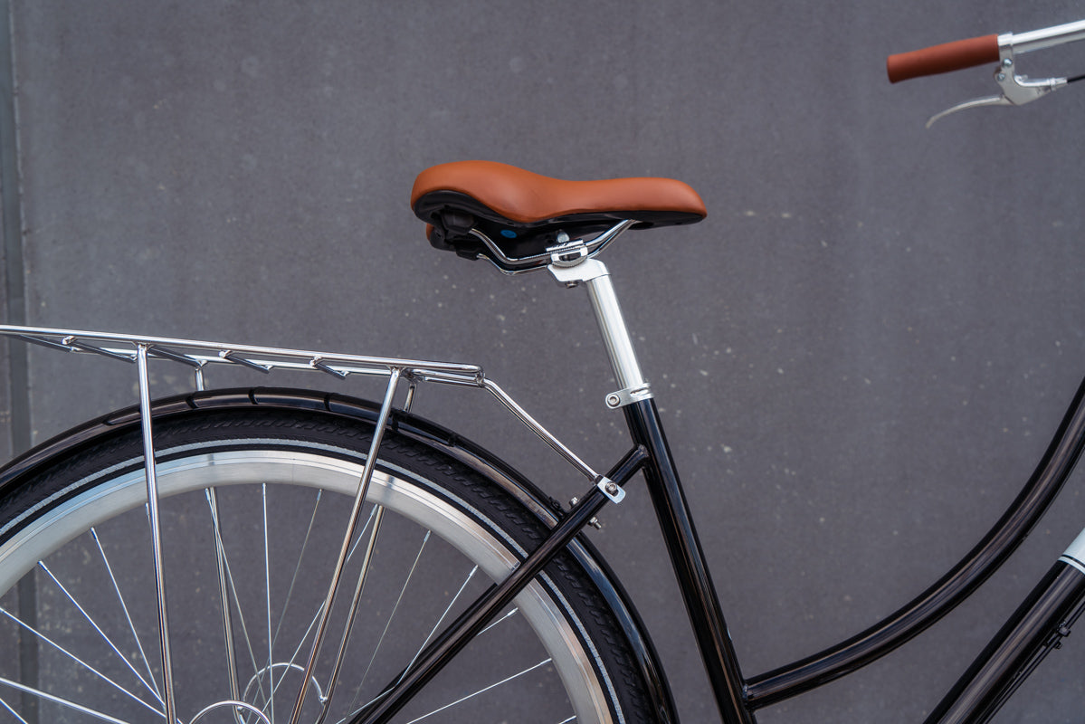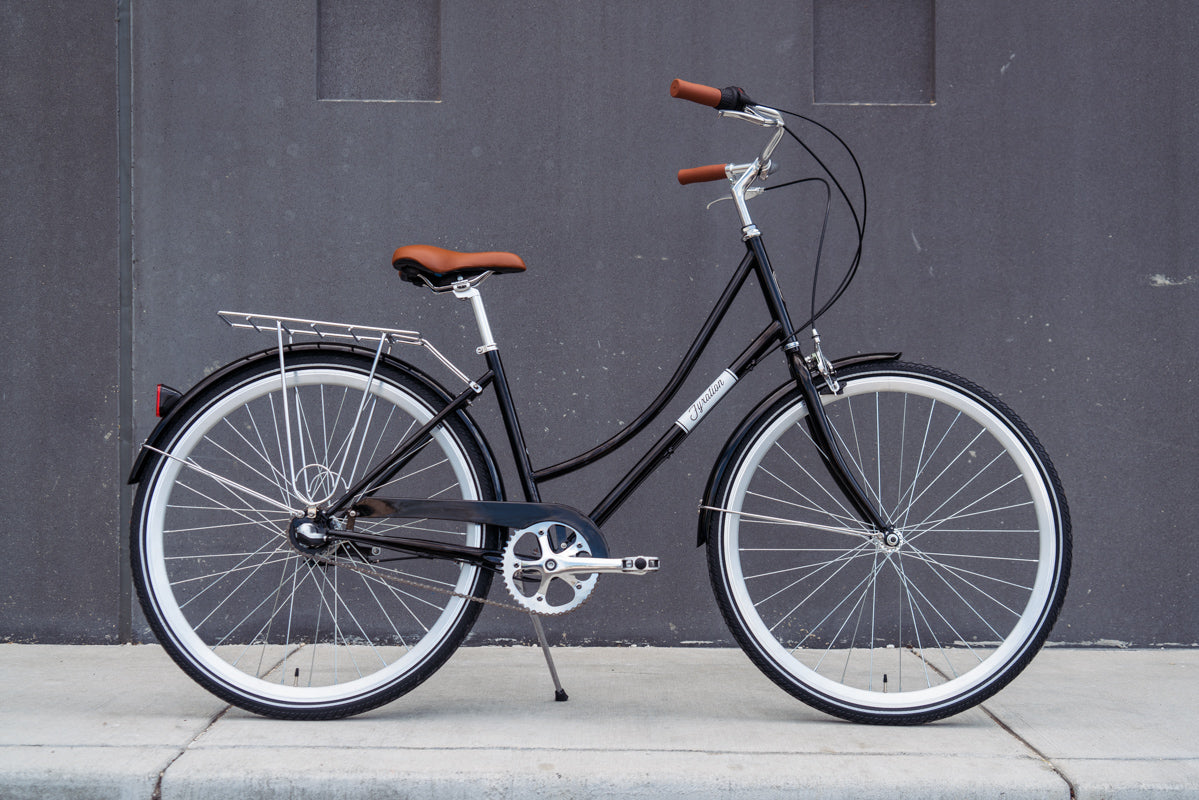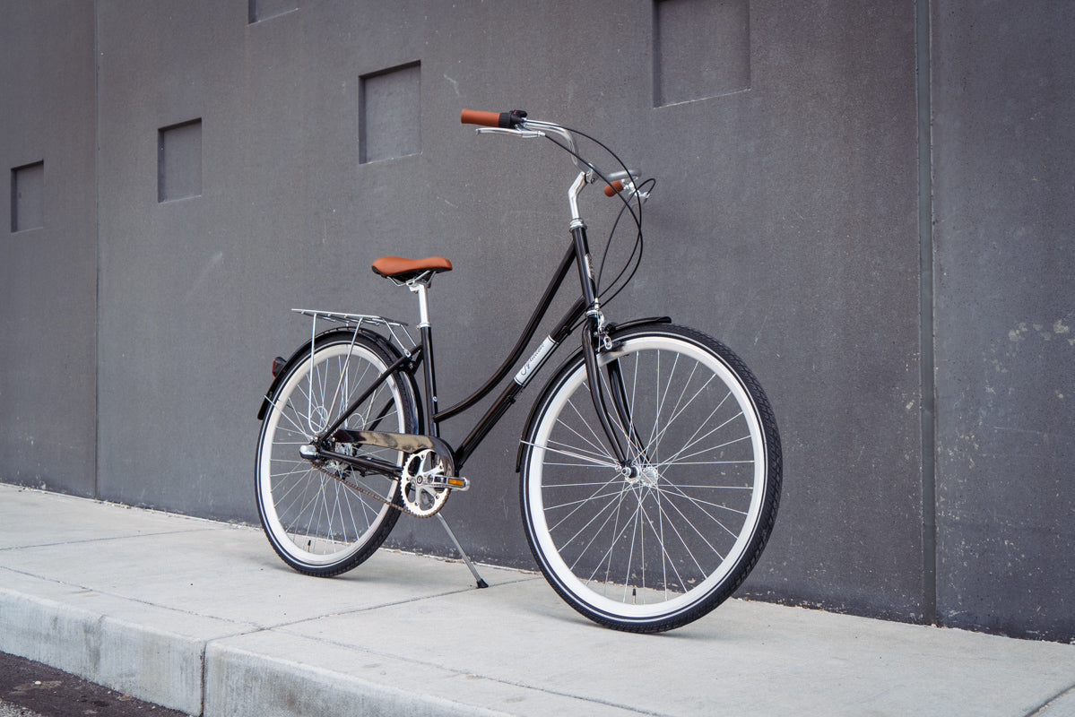 Built around a simple and reliable Shimano 3 speed hub with an easy to use twist shifter, this bike features elegant 1 color paint and simple styling. Finished off by matching painted fenders, painted chain guard and a built in rack, this bike is perfect for any city.