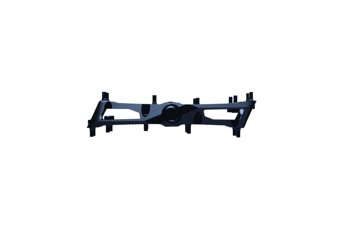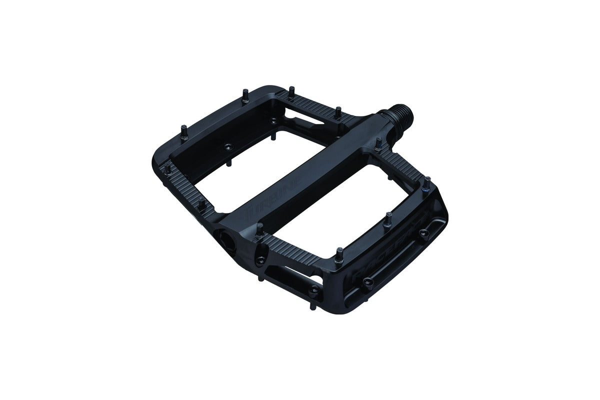 Want full-send grip in a platform pedal? The Race Face Turbine cradles your foot from every angle — concave front-to-back AND inboard-to-outboard — so your feet stay planted whether you're mashing up a climb or sending it on the descent. The asymmetric platform is shaped like an actual foot (wider at the toe, narrower at the heel), 11 height-adjustable pins per side let you dial grip from "XC casual" to "enduro death grip," and the 115 x 110mm platform gives you plenty of real estate without turning into a shin-destroying DH sled. At 419g it's an honest alloy pedal that's built to take abuse — and backed by Race Face's lifetime warranty, crashes included.